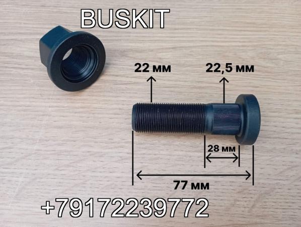 Шпилька передней ступицы шпилька переднего колеса Кинг лонг King Long 6127 6129 6130 230000072 230000080 гайка переднего колеса болт колесный передний Кинг лонг резьба М22 шлицы D-22.5 мм L-общ 77 мм